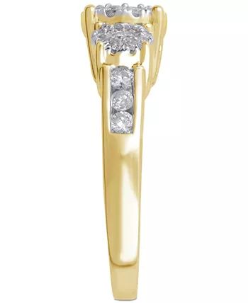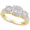 Make her wishes come true with this romantic round-shape three stone halo diamond engagement ring (3/4 ct. t.w.) beautifully designed in 14k gold, white gold or rose gold.