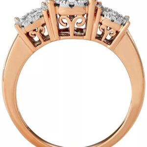 Make her wishes come true with this romantic round-shape three stone halo diamond engagement ring (3/4 ct. t.w.) beautifully designed in 14k gold, white gold or rose gold.