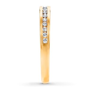 This lovely wedding band for her sparkles with round diamonds channel-set in 14K yellow gold. The ring has a total diamond weight of 1/5 carat.